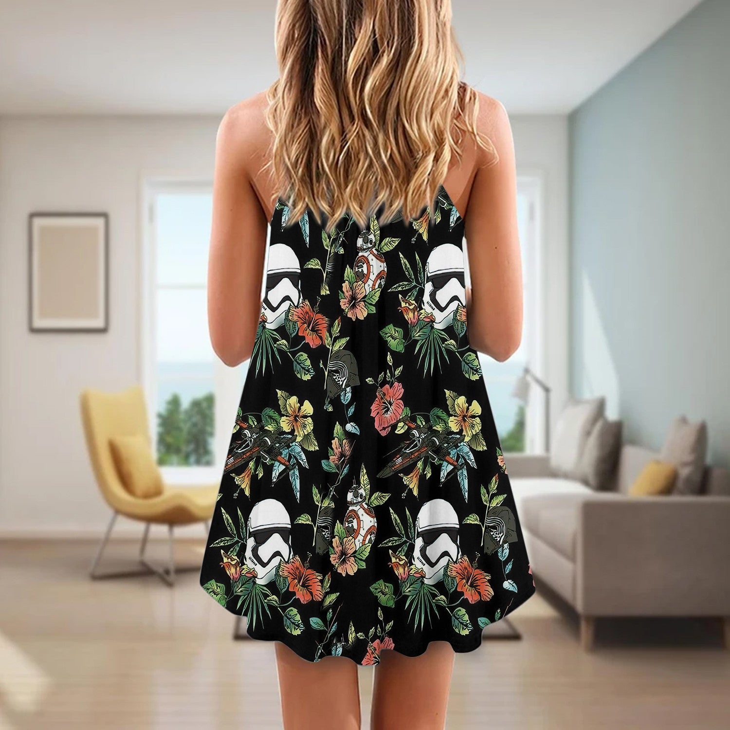 - Crafted from cotton spandex fabric, this sleeveless dress features an eye-catching appearance.