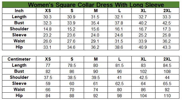 - Square collar, long sleeve, waist with belt