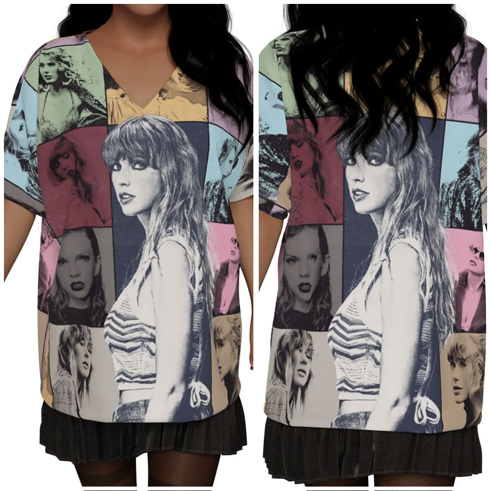 Taylorswiftlover Women's Bat Sleeves V-Neck Blouse