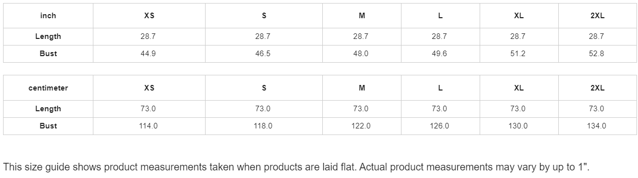 | inch | XS | S | M | L | XL | 2XL |